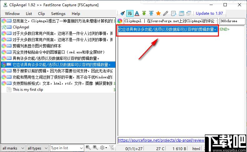 7、在列表中标记过滤器匹配项,允许将剪辑粘贴为选定的原始文本或纯文本或全部。