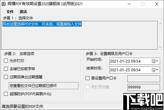 Tags:辉耀PDF有效期设置工具下载,pdf加密,权限设置,文档加密